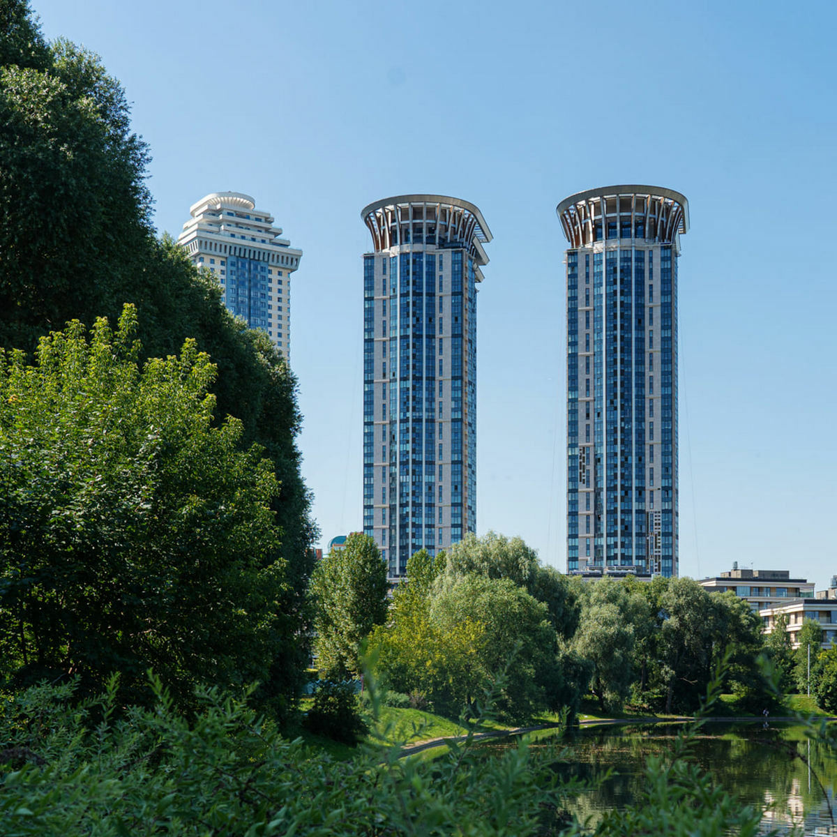 Главное преимущество этого проекта заключается в удачно выбранном местоположении. Высотки построены напротив Мосфильмовского пруда, в непосредственной близости от Матвеевского леса, что обеспечивает отличную экологическую обстановку. На Минскую улицу организован удобный выезд. По этой дороге можно быстро доехать до Мосфильмовской улицы и Кутузовского проспекта. Раменки – тихий и престижный район, в котором много элитных комплексов, зарубежных посольств с резиденциями.
